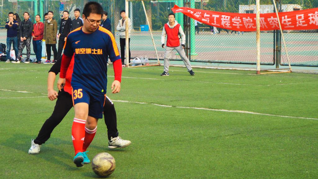 下半场比赛中,双方拼抢激烈,专硕4班面对落后的压力,奋战到了最后一刻,几次险些将比分扳平,但是没能抓住机会。博士班也出现了很多个进球的绝佳机会,但每次都稍差了一丝的运气。随着主裁判最后一声哨响,季军之战宣告结束。博士联队最终以一球之差战胜专硕4班,获得了航空学院足球赛的季军。让我们恭喜博士联队,同时,研一专硕4班以拼搏无畏的精神一路踢入四强,面对曾经的对手,没有减少半分斗志。敢于亮剑,敢于争先的态度赢得了所有人的赞叹与尊敬。轻微的雾霾让阳光温柔地洒在草坪上,在球员们的衣服上亦涂上了淡淡金色。